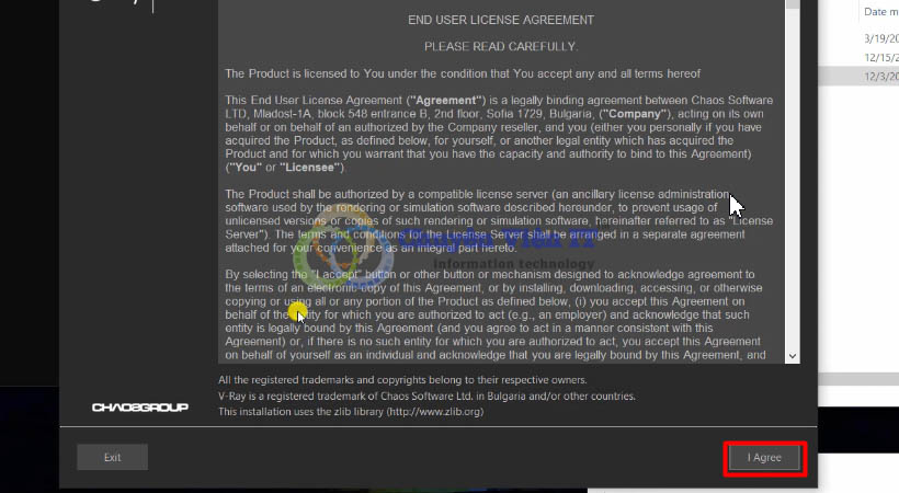 Bước 3 : Chọn I Agree cài đặt Vray for Revit 2019.