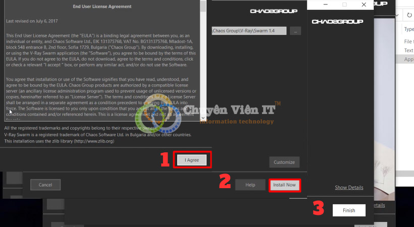 Bước 7 : Tiến hành cài đặt Vray Swarm nhé.