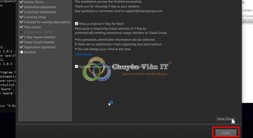 Bước 9 : Hoàn tất cài đặt Vray for Revit 2017.