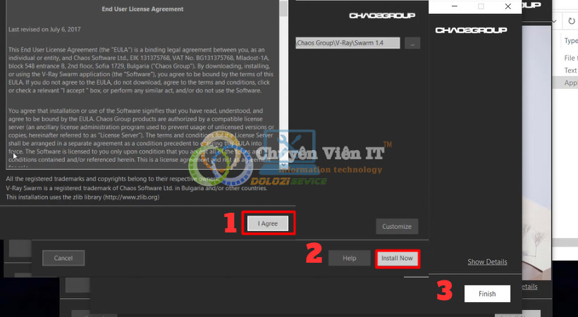 Bước 6 : Tiến hành cài đặt Vray Swarm.