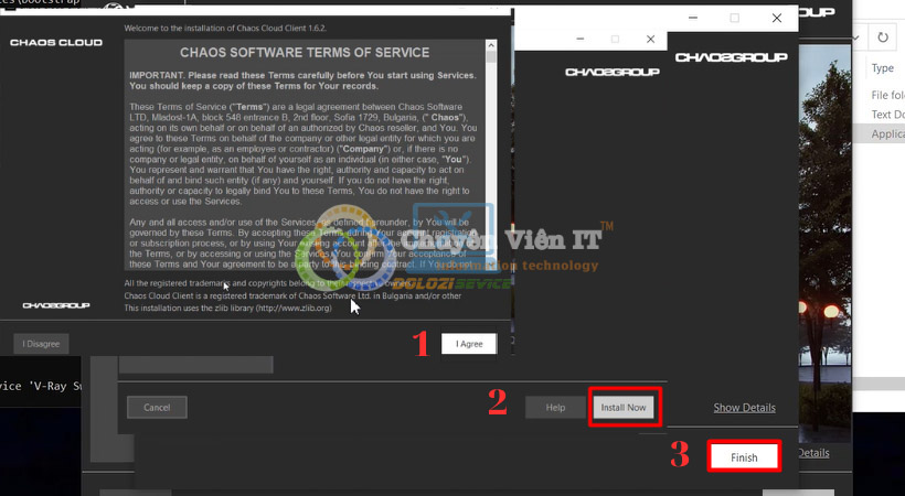 Bước 7 : Tiến hành cài đặt Chaos Cloud nhé.