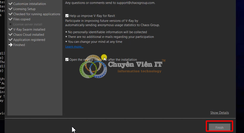 Bước 8 : Hoàn tất cài đặt Vray for Revit 2020.