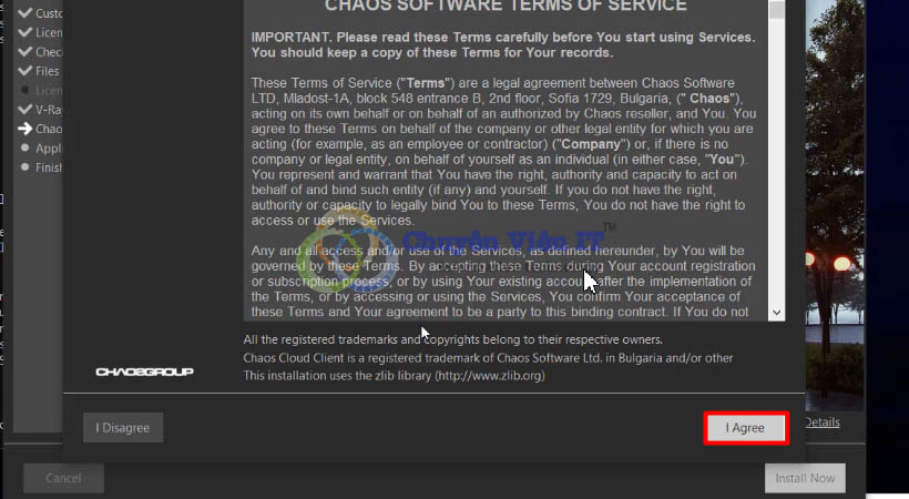 Bước 3 : Chọn I Agree cài đặt Vray for Revit 2018.